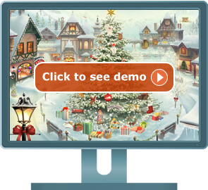 Click on the numbered ornament to see each day's activity. Every day a new animation becomes available for you to watch, complete with its own Christmassy music. As the days pass, the beautiful Alpine scene is embellished with more and more detail, while your own cosy sitting room is filled with presents and decorations.