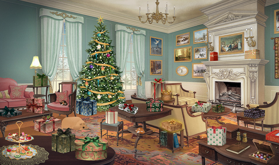 In a beautiful country house, you’ll click on a numbered ornament to find a new festive surprise every day of December up to Christmas Day