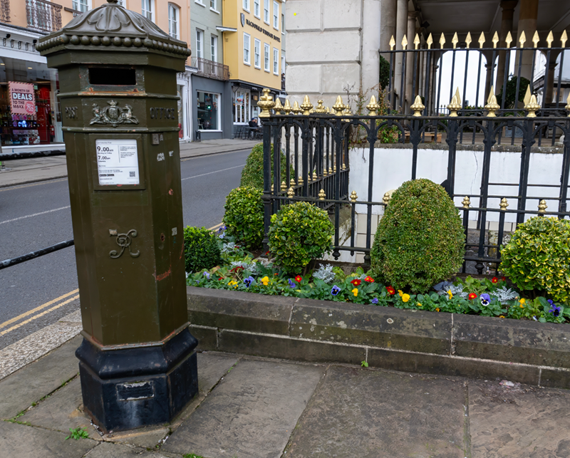 There was no standardised colour for the earliest postboxes. Though the original ones in Jersey were the now-famous red, they appeared in all sorts of colours in the early years. In 1859, however, a standardisation arrived, emblematic of the ‘nimby’ culture that persists today: “it’s a wonderful idea, just don’t spoil my view!”. Painted green to blend into their surroundings – generally hedges – they were the result of endless complaints from the public, who couldn’t find them! So, in 1874, a repainting to a bold, royal red was ordered – and took a full decade to complete.