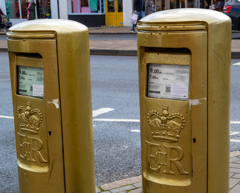 Then there are the weird ones. In the 1930s, a series of blue airmail pillar boxes appeared in London, intended to be used for letters destined for the burgeoning airmail services. They were removed in 1939 and repainted red, though some can still be identified by their double-aperture collection plates – a small ghost of their former purpose. Finally, following a wave of Team GB gold medals at the 2012 London Olympics, a postbox was painted gold in the home town of every gold medallist. While originally intended as a temporary measure, the massively positive public response quickly changed them into permanent fixtures.
